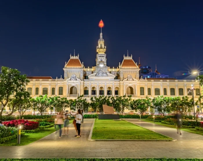 Ved skumringstid kan du spasere langs Nguyen Hue-promenaden, som er omkranset av blomster, fontener og stemningsfull arkitektur. Her kan du oppleve den unike bystemningen når lokalbefolkningen samles med gatekunstnere, dansere og unge familier i et sjarmerende mylder. Atmosfæren er både avslappet og livlig, og alt toppes rundt det opplyste rådhuset.