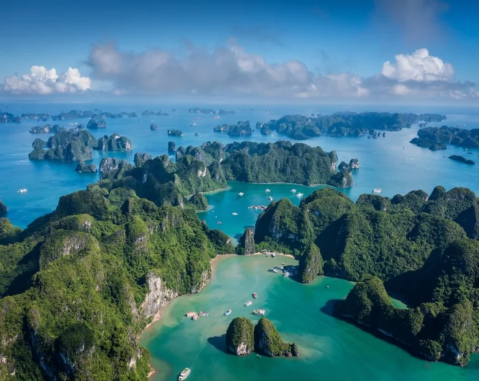 Ha Long-bukten er et av Vietnams mest unike naturområder. Her reiser hundrevis av grønnkledde kalksteinsklipper seg loddrett opp fra havet, som gjennom året skifter farge fra dypblått til jadegrønt. På den største øya, Cat Ba, ligger det flere landsbyer, mens noen av de mindre øyene rommer små fiskersamfunn. For reisende er Ha Long-bukten først og fremst et fantastisk naturområde i verdensklasse, men for vietnameserne er det også et sted fullt av legender om drager og dramatikk. Bukten dekker et område på ca. 1 500 km² og ble innskrevet på UNESCOs verdensarvliste i 1994.