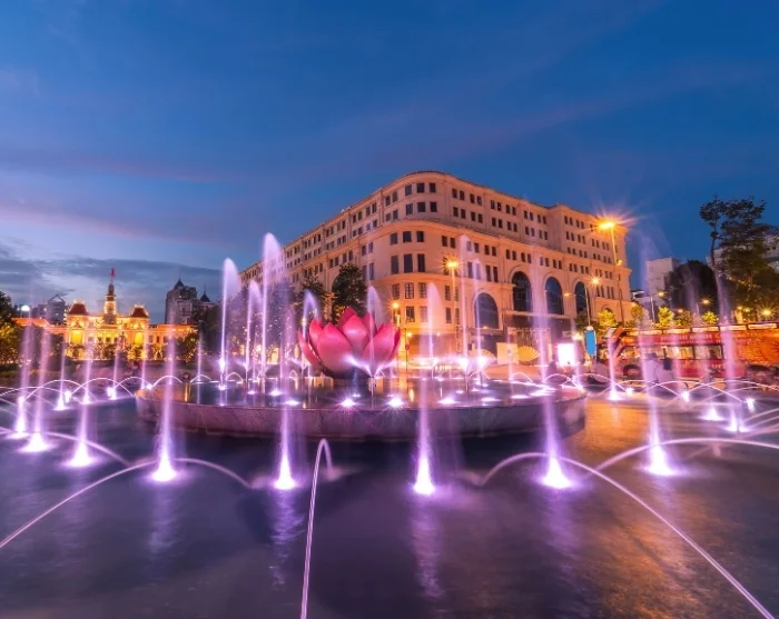 Om kvelden kan du ta en rusletur nedover Nguyen Hue-promenaden, omgitt av blomster, fontener og stemningsfull arkitektur. Her får du oppleve det unike bylivet, når lokalbefolkningen samles med gatekunstnere, dansere og unge familier i et sjarmerende virvar. Atmosfæren er avslappet og livlig, og alt kulminerer rundt det opplyste rådhuset.
