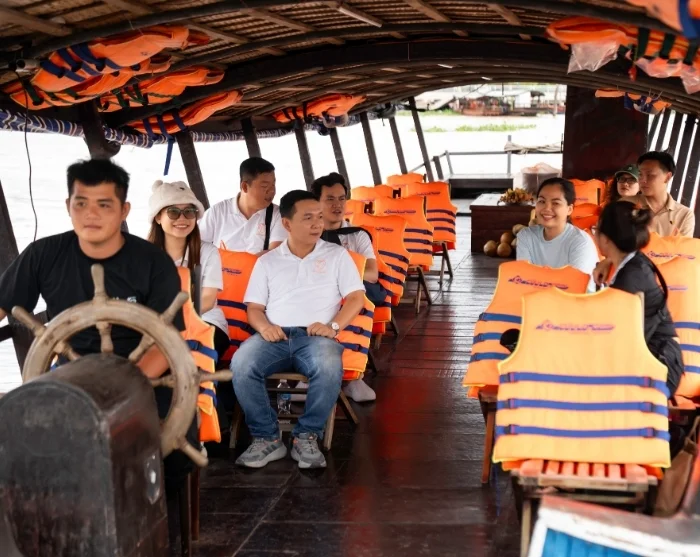 Etter cirka 2,5 timers kjøring ankommer du byen Cai Be. Her går du om bord i en båt og seiler ut på det frodige Mekongdeltaet. Du besøker lokale verksteder der dyktige håndverkere lager produkter av kokos. Deretter fortsetter du med en liten sampan – en tradisjonell, håndrodd trebåt – gjennom Mekongdeltaets smale, svingete kanaler.