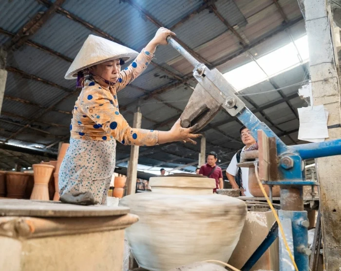 Du besøker også Mekongdeltaet, hvor du seiler gjennom det frodige deltaet og får innblikk i lokale håndverkstradisjoner. På en liten øy får du servert en hjemmelaget lunsj, og i landsbyen Vinh Long møter du lokalbefolkningen og lærer om et bærekraftig og sosialt utviklingsprosjekt du bidrar til å støtte gjennom reisen din.