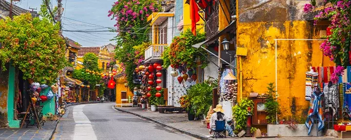 Bortenfor elven brer det seg ut en labyrint av små, stemningsfulle gater. Her møtes du av en fargerik blanding av japanske trehus, kinesiske forsamlingshus, franske kolonitidsbygninger og de karakteristiske kjøpmannshusene. Fargerike lanterner henger som girlandere over gatene og skaper en helt spesiell stemning, spesielt når mørket faller på. Butikker, gatematboder, kafeer og små restauranter ligger som perler på en snor og inviterer til avslappende øyeblikk og nysgjerrige oppdagelser.